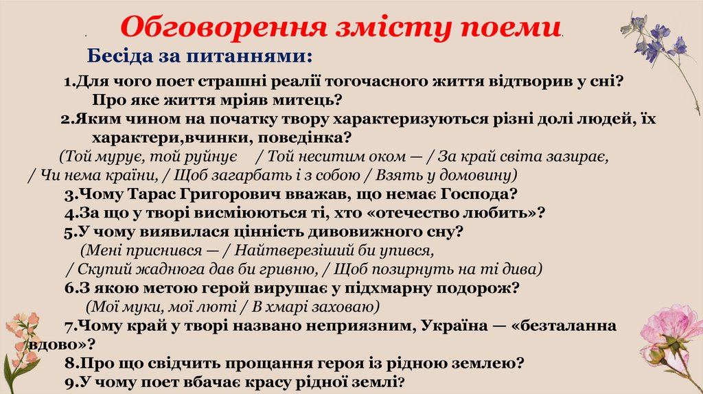 .Обговорення змісту поеми
