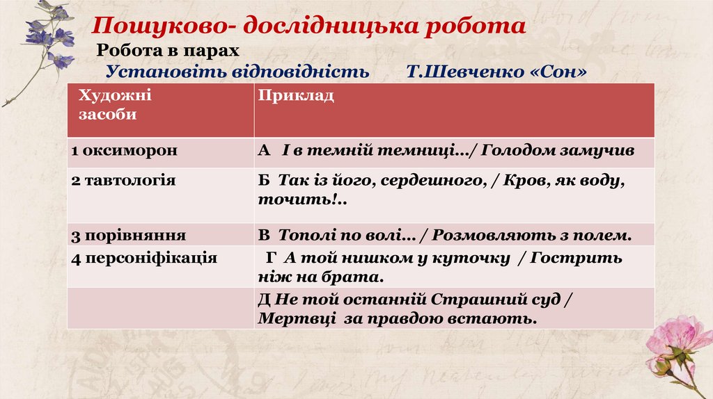 Пошуково- дослідницька роботаРобота в парах