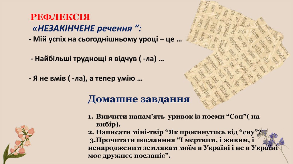 1. Вивчити напам’ять уривок із поеми “Сон”( на