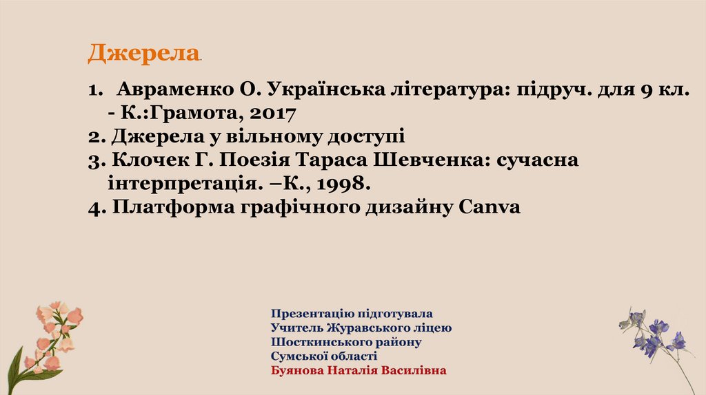 1. Авраменко О. Українська література: підруч. для 9 кл.
