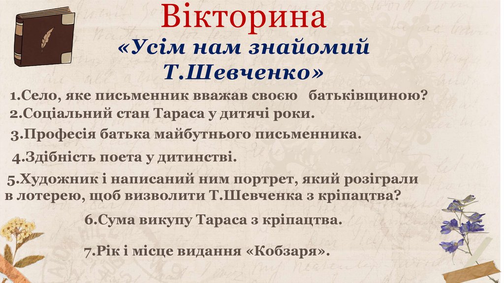 1.Село, яке письменник вважав своєю батьківщиною?