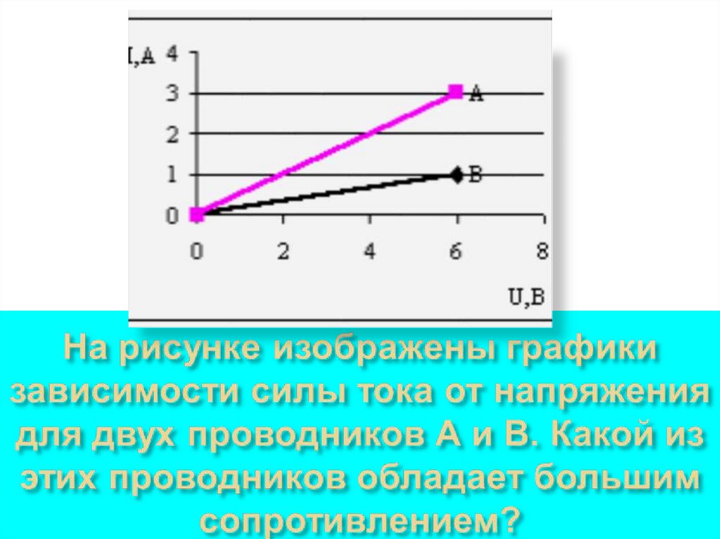 Чем меньше сопротивление проводника,тем круче проходит его вольт-амперная