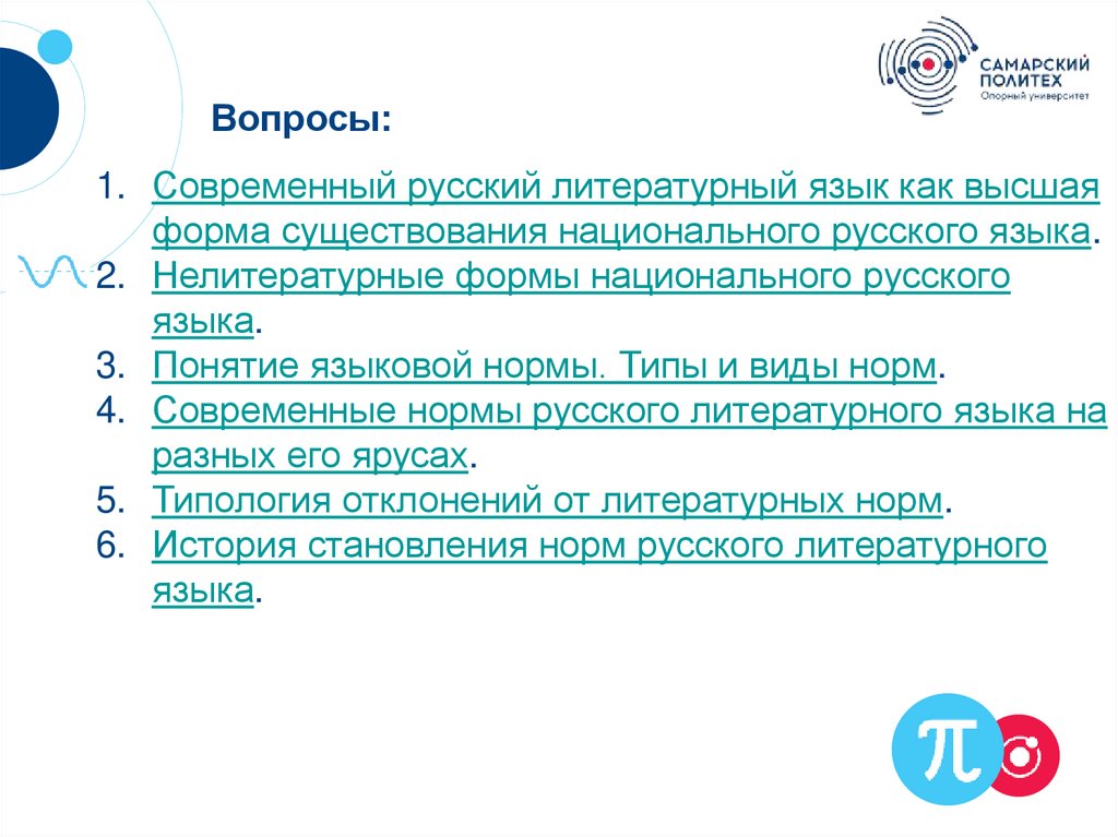 Вопросы:1. Современный русский литературный язык как высшая