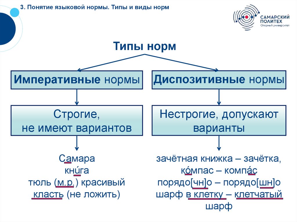 3. Понятие языковой нормы. Типы и виды норм.