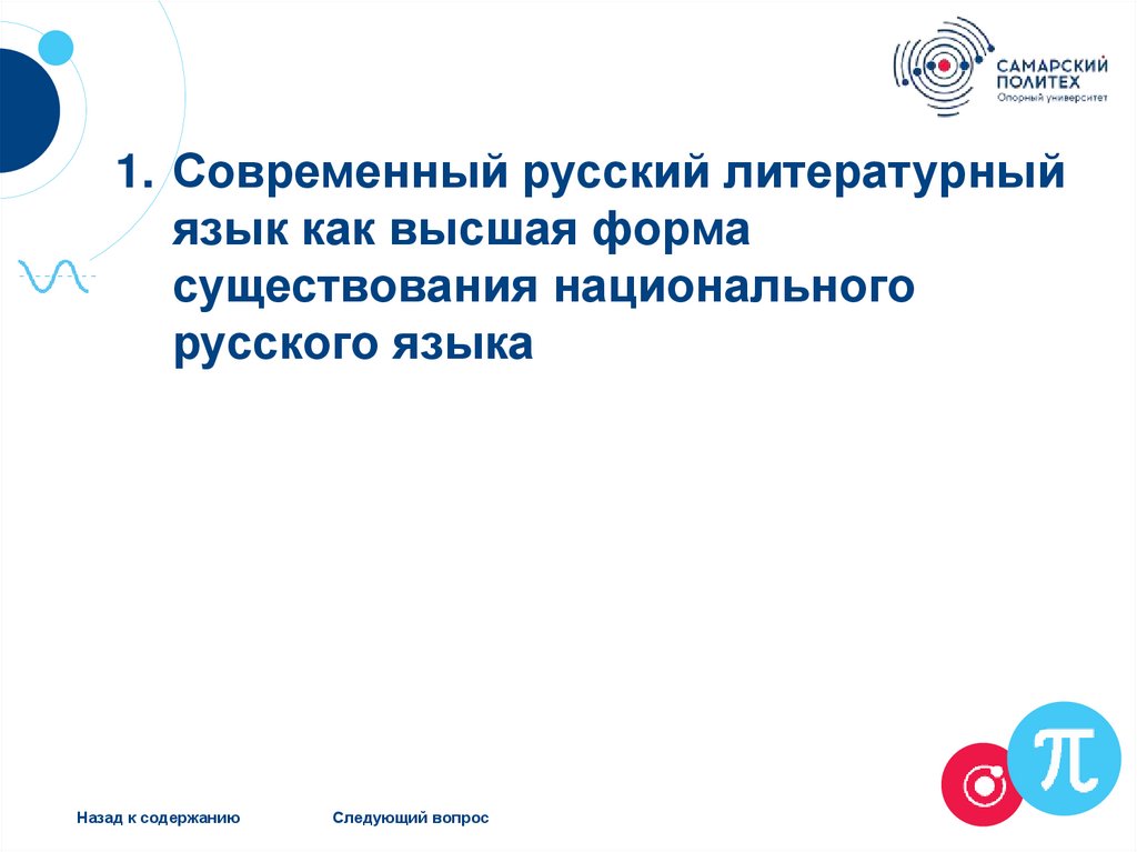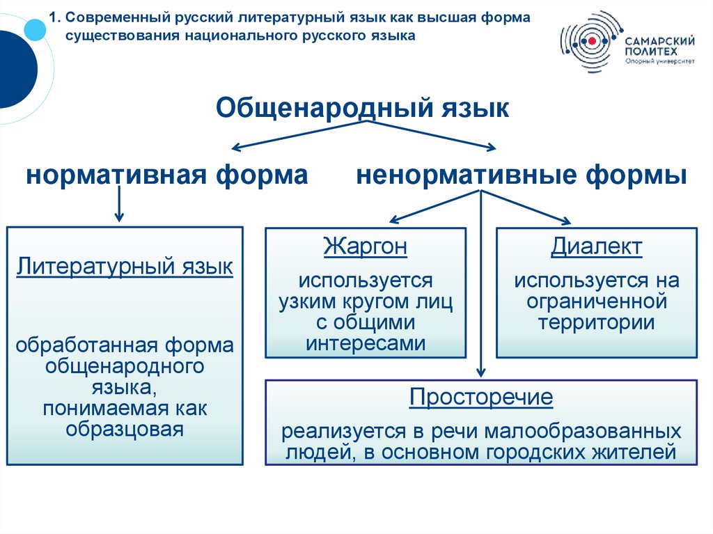 1. Современный русский литературный язык как высшая формасуществования национального русского языка