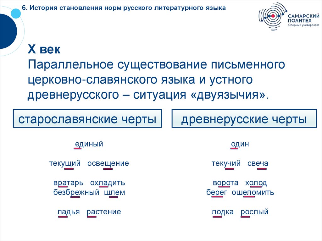 6. История становления норм русского литературного языкаХI – XIV века