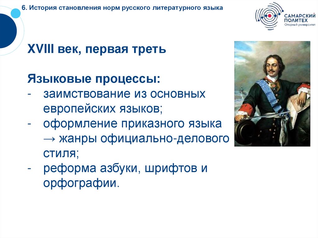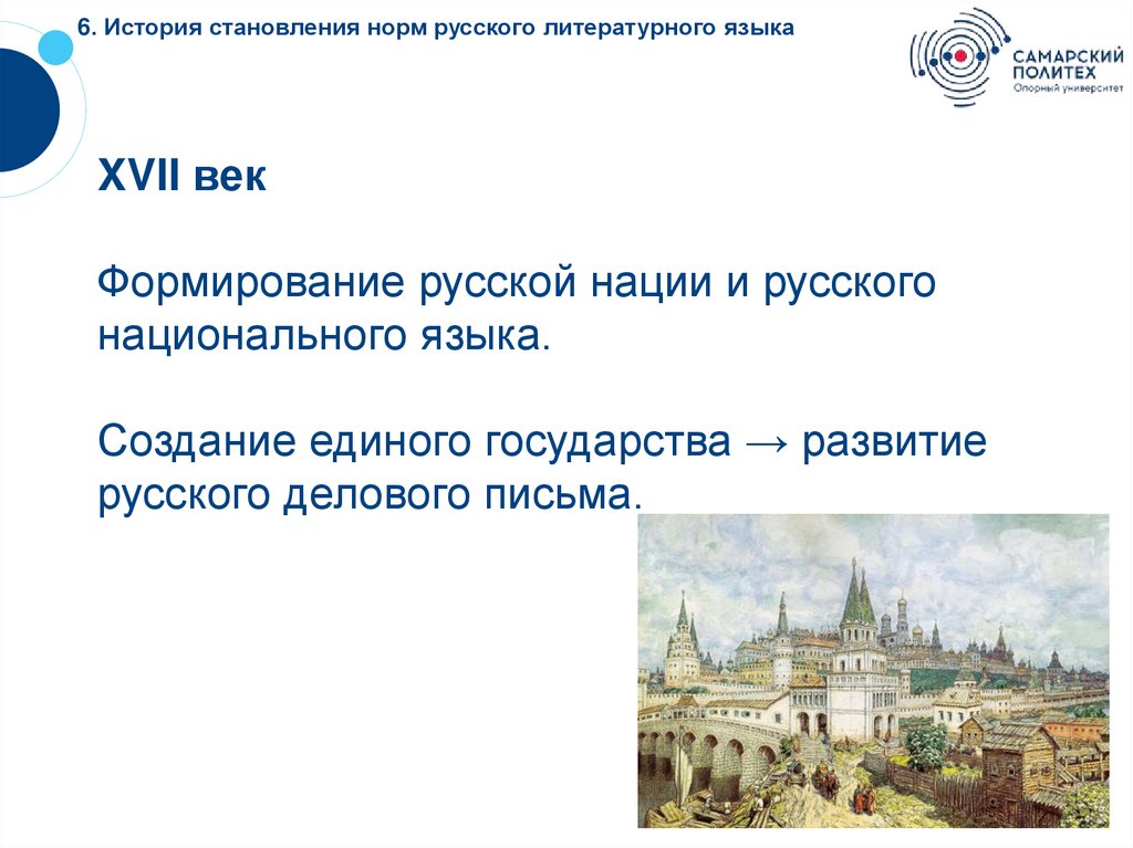 6. История становления норм русского литературного языкаXVII век