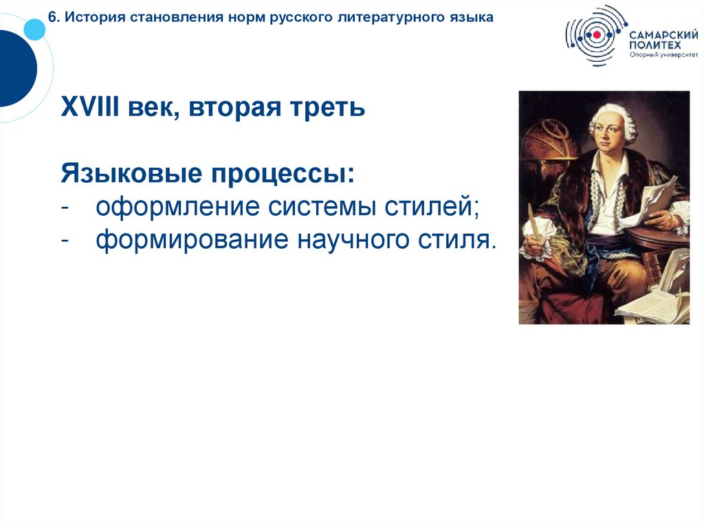 6. История становления норм русского литературного языкаXVIII век, вторая треть