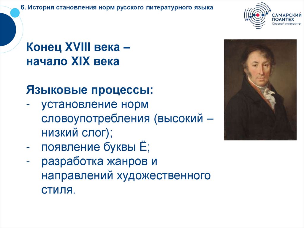 6. История становления норм русского литературного языкаКонец XVIII века –