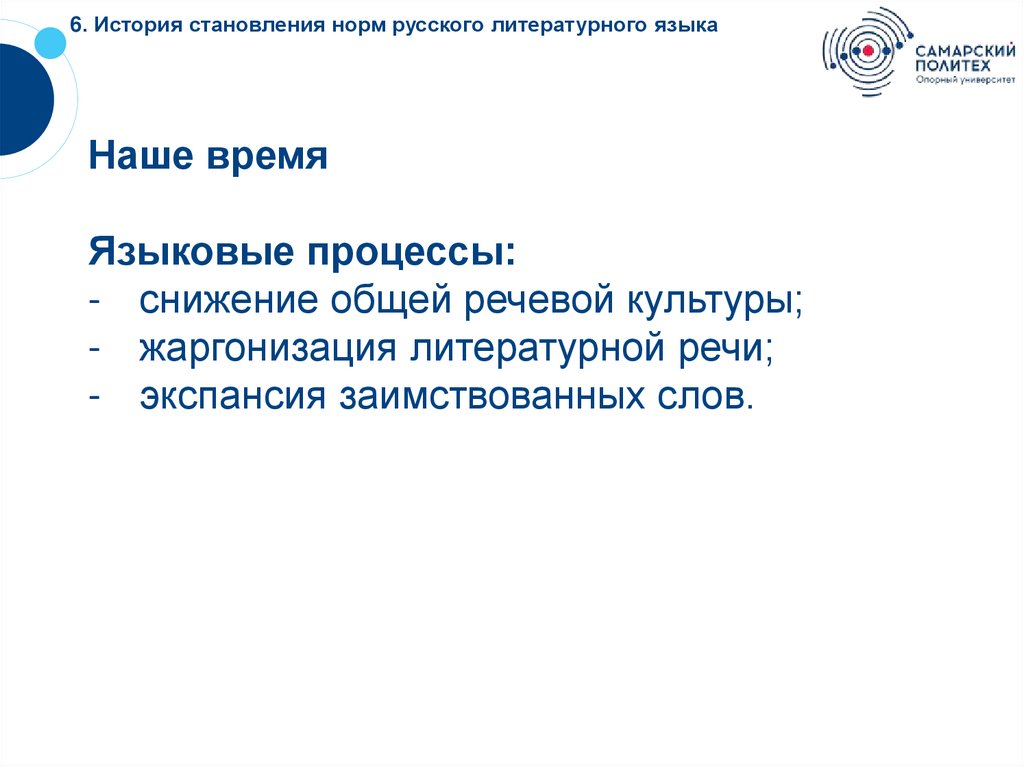 6. История становления норм русского литературного языкаНаше время
