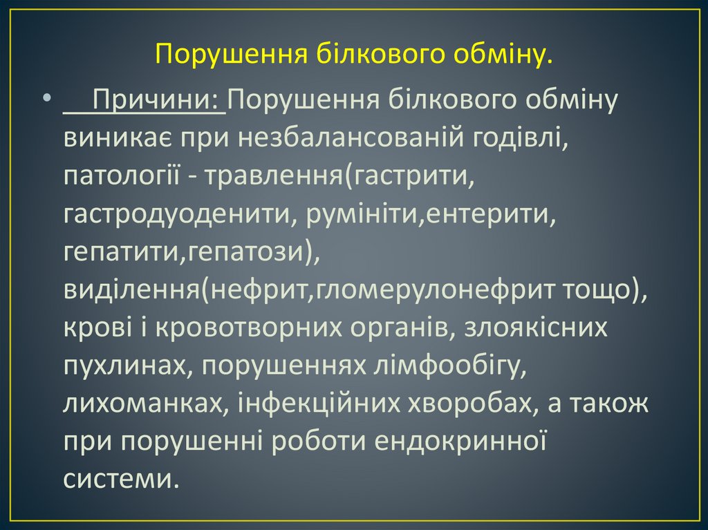 • Порушенням обміну речовин називають комплексзмін в організмі, які проявляють себе в різній