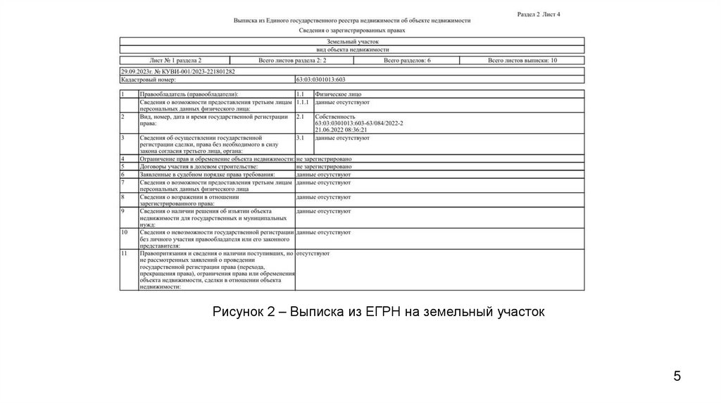 Рисунок 2 – Выписка из ЕГРН на земельный участок5