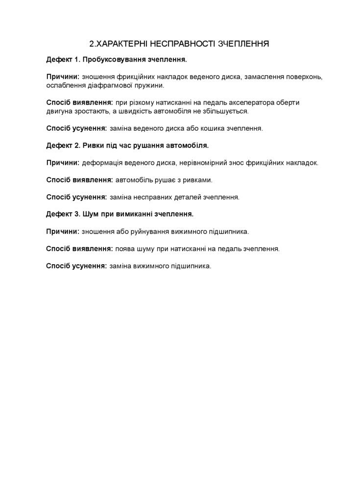 2.ХАРАКТЕРНІ НЕСПРАВНОСТІ ЗЧЕПЛЕННЯДефект 1. Пробуксовування зчеплення.