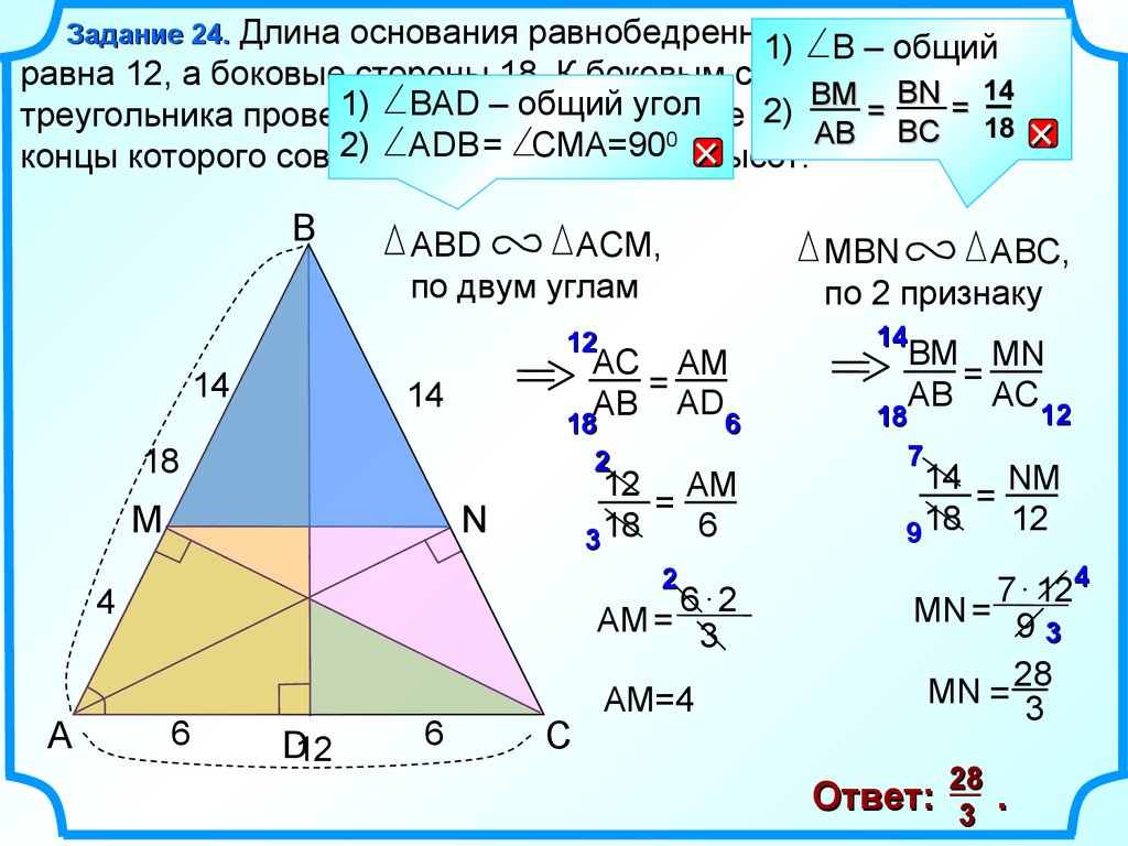 Задание 24. Длина основания равнобедренного треугольника1) В – общий