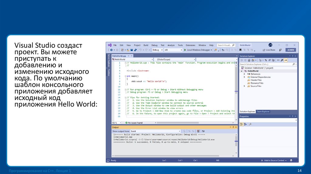 1. История создания языка С++. Visual Studio. Обзор элементов языка С++. Типы данных. Ввод и вывод информации