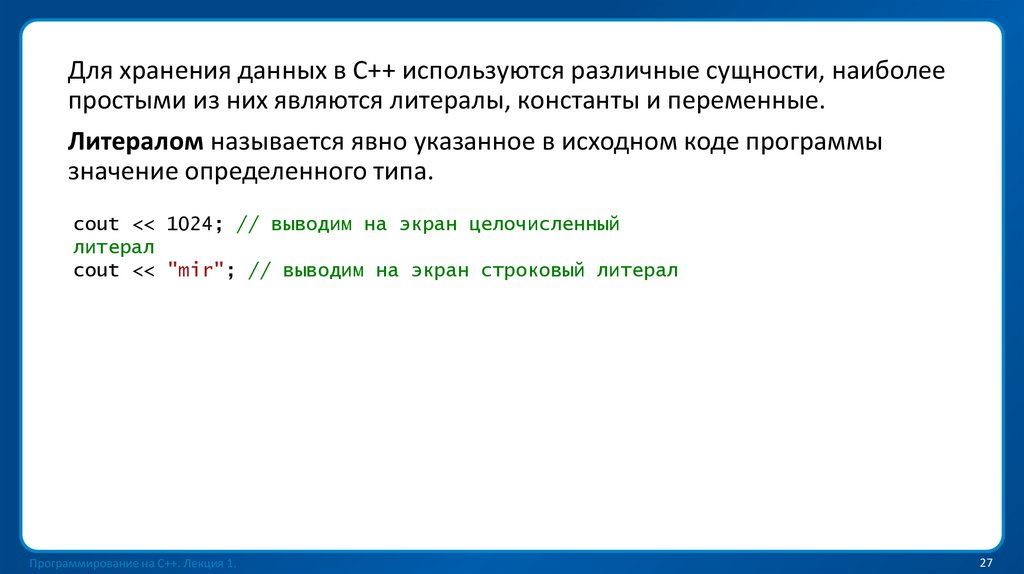 • Язык C++ — один из значимых языков программирования.• На C++ написаны операционные системы (Windows), драйвера