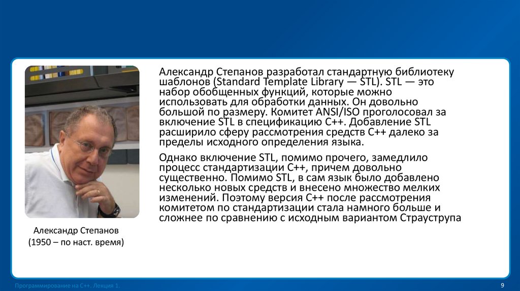 Александр Степанов разработал стандартную библиотекушаблонов (Standard Template Library — STL). STL — это