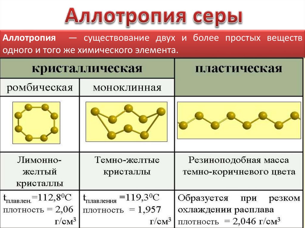 •Для серы характерны несколько аллотропных