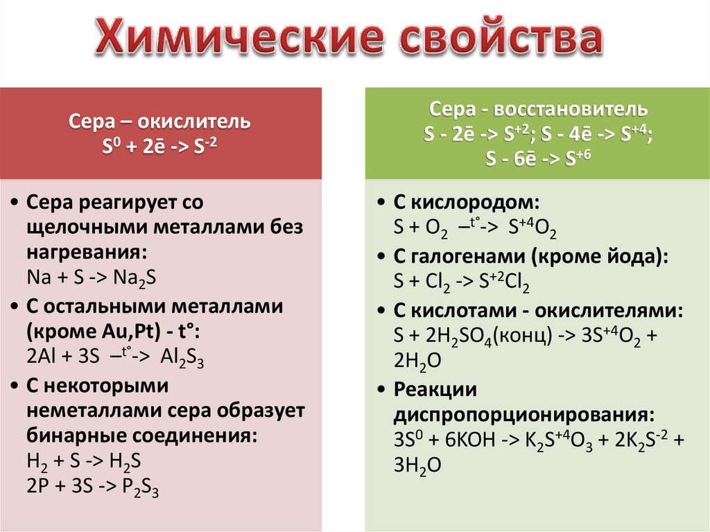 • Сера реагирует со
