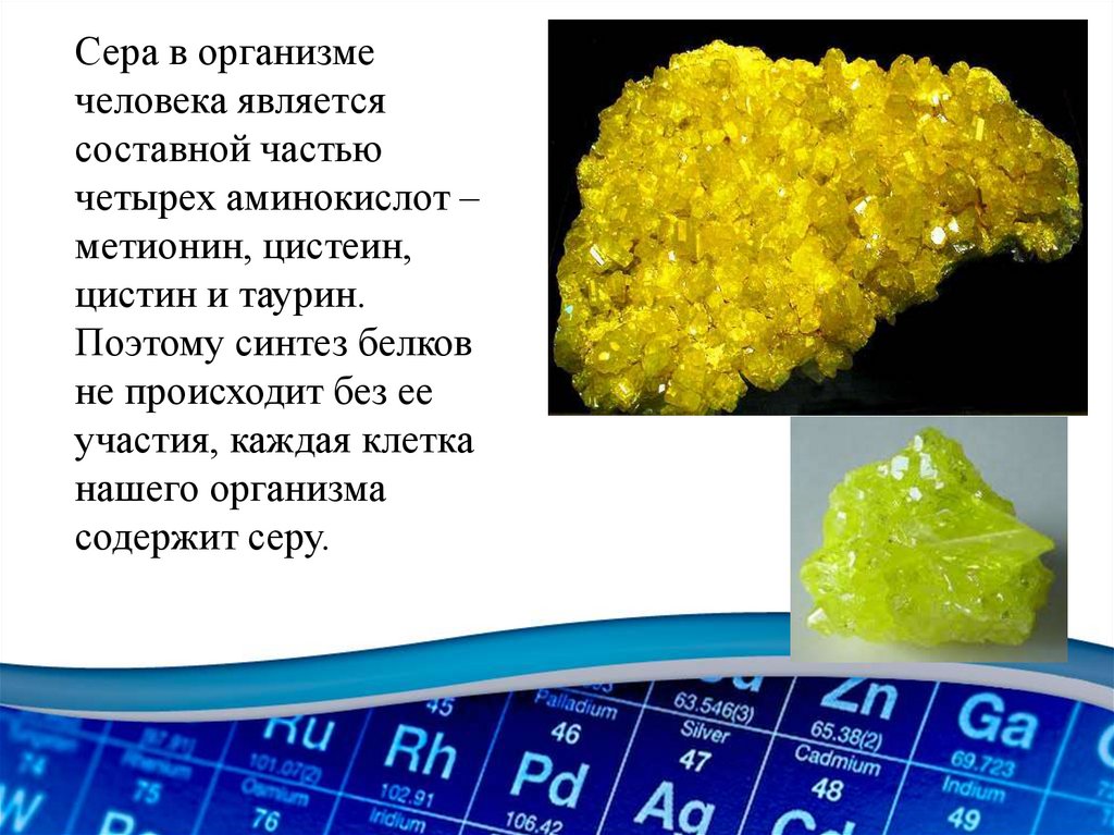 Сера в организмечеловека является