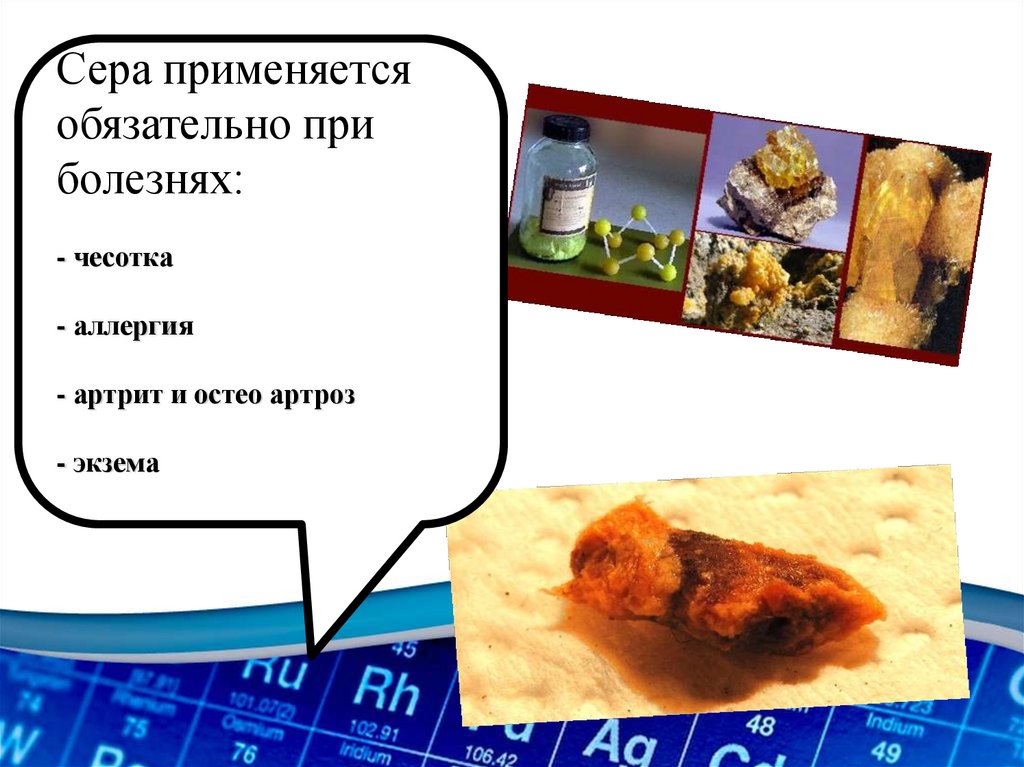 Серу называют «минералом «красоты», так как при её дефиците