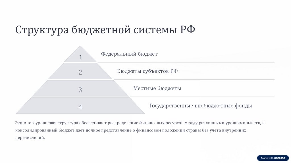 Эта многоуровневая структура обеспечивает распределение финансовых ресурсов между различными уровнями власти, а
