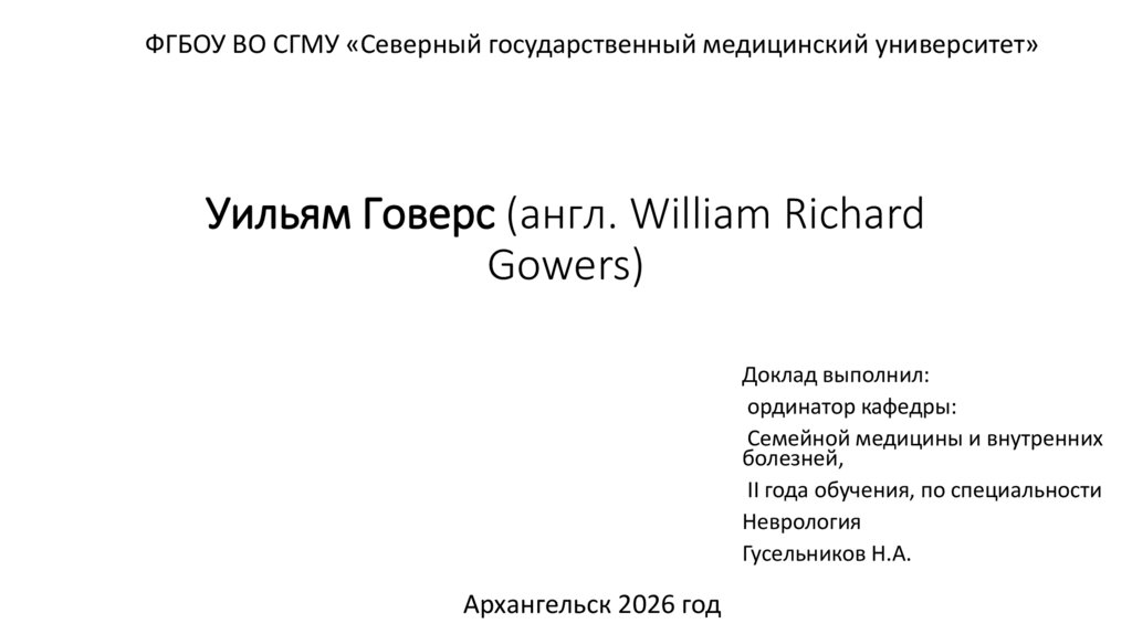 ФГБОУ ВО СГМУ «Северный государственный медицинский университет»Уильям Говерс (англ. William Richard