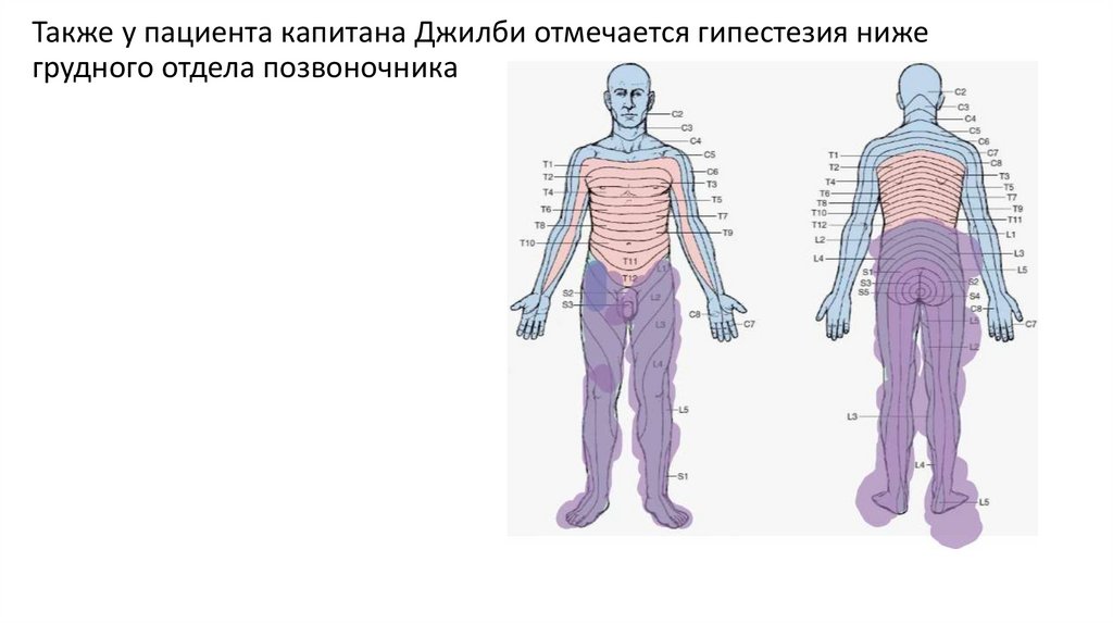 Также у пациента капитана Джилби отмечается гипестезия нижегрудного отдела позвоночника