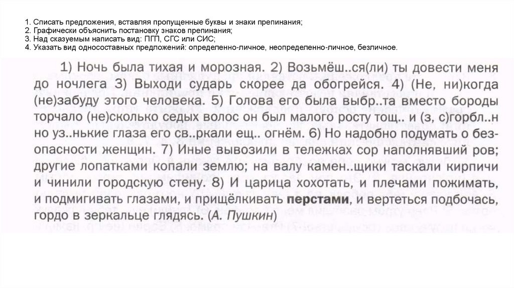 1. Списать предложения, вставляя пропущенные буквы и знаки препинания;2. Графически объяснить постановку знаков препинания;