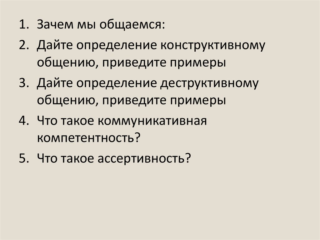 1. Зачем мы общаемся:2. Дайте определение конструктивному