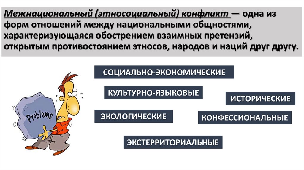 Межнациональный (этносоциальный) конфликт — одна изформ отношений между национальными общностями,