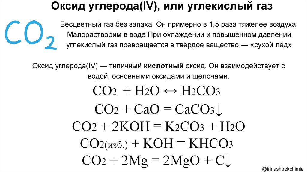 Оксид углерода(IV) — типичный кислотный оксид. Он взаимодействует с