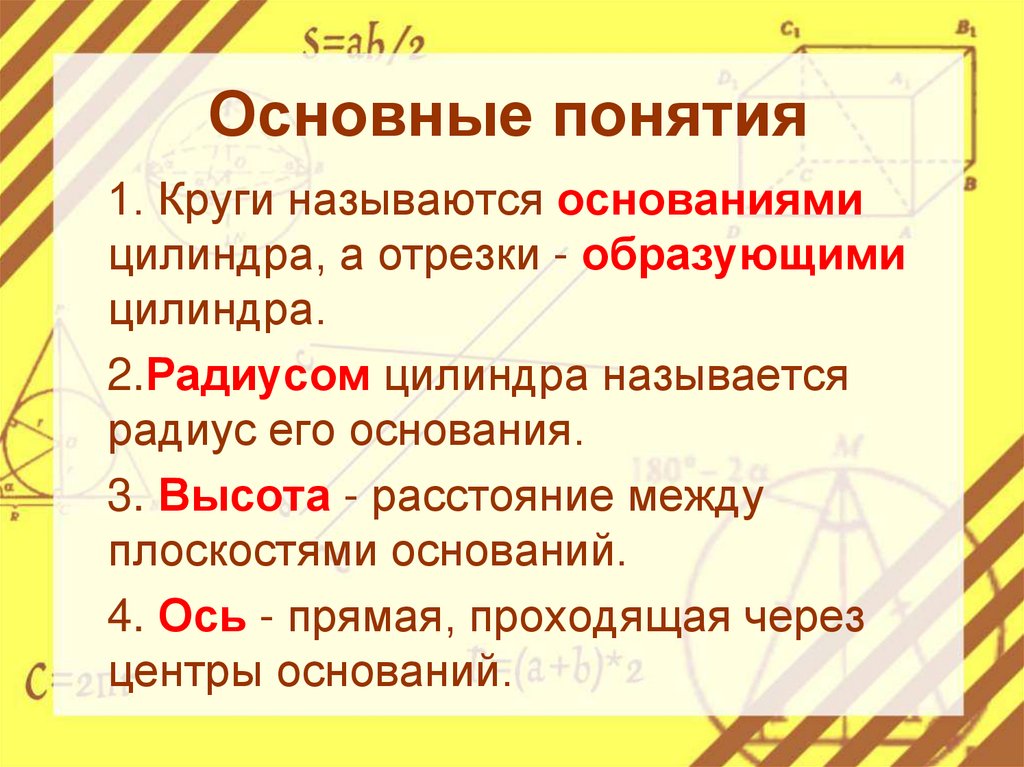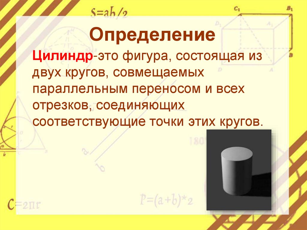 ОпределениеЦилиндр-это фигура, состоящая из