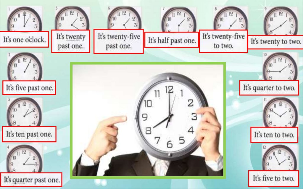 It’s 12 o’clock.It’s ten past one. (1.10)