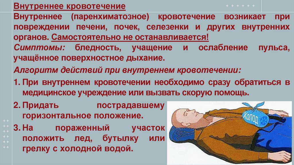 1. При внутреннем кровотечении необходимо сразу обратиться в