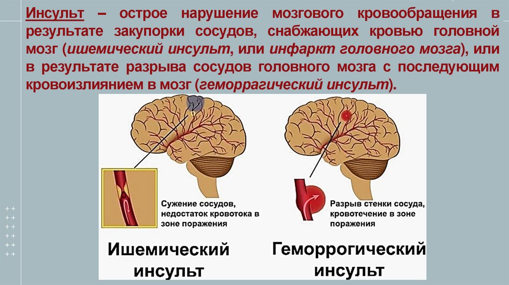 Инсульт – острое нарушение мозгового кровообращения врезультате закупорки сосудов, снабжающих кровью головной