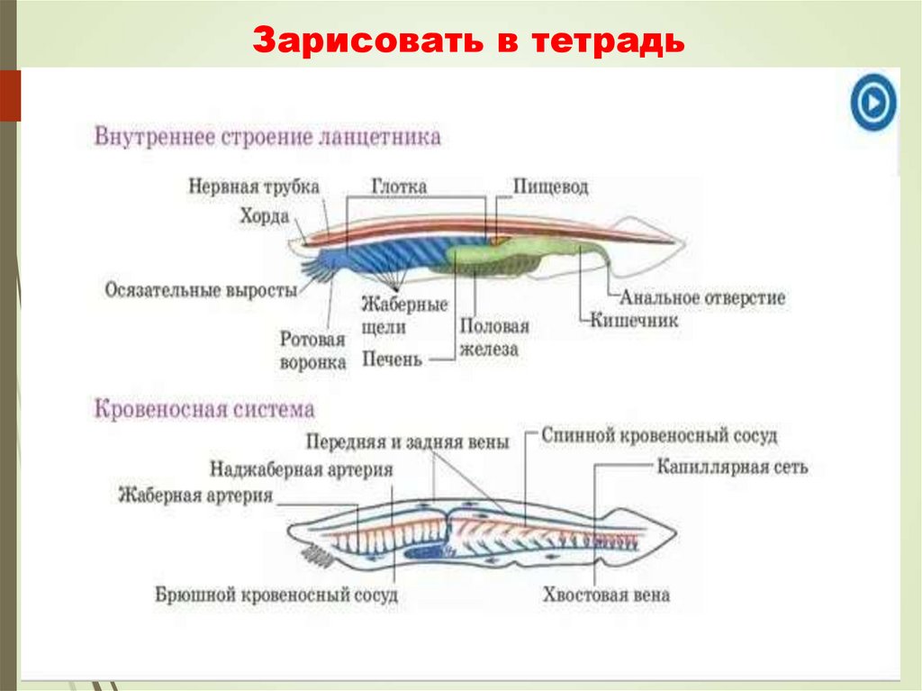 1. Внутренний скелет – Хорда, проходящая откончика головы до кончика хвоста.