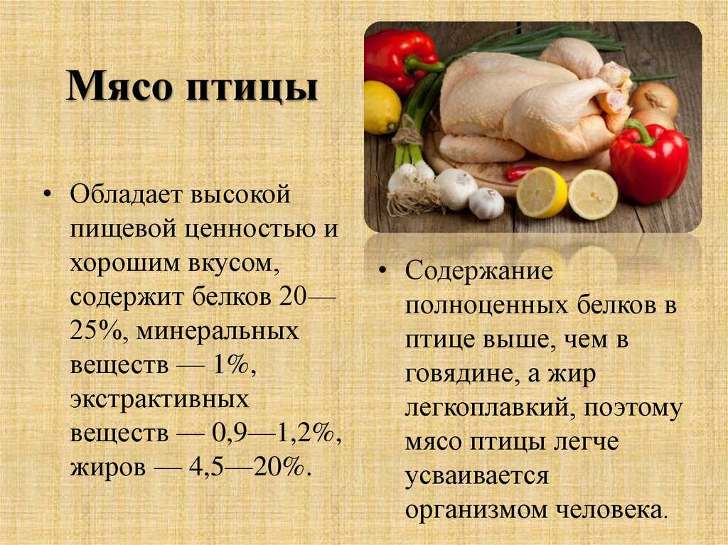Мясо птицы• Обладает высокой