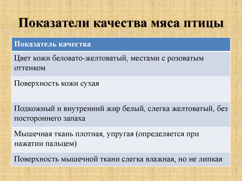 Показатели качества мяса птицыПоказатель качества