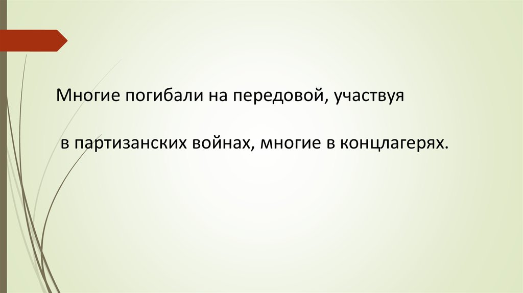Многие погибали на передовой, участвуяв партизанских войнах, многие в концлагерях.