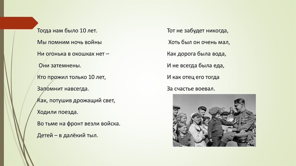 Тогда нам было 10 лет.Тот не забудет никогда,