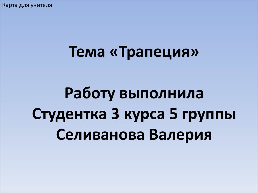1. Тема «Трапеция» Работу выполнила Студентка 3 курса 5 группы Селиванова Валерия