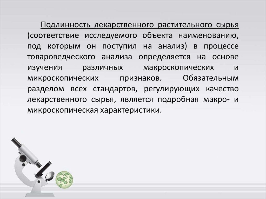 лекарственного сырья, является подробная макро- и