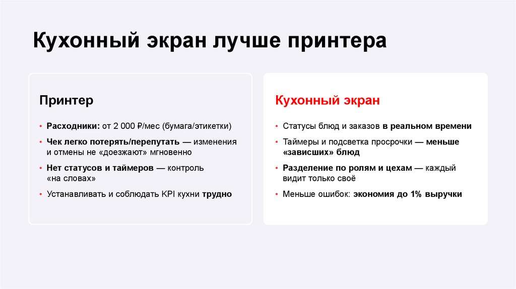 • Устанавливать и соблюдать KPI кухни трудно