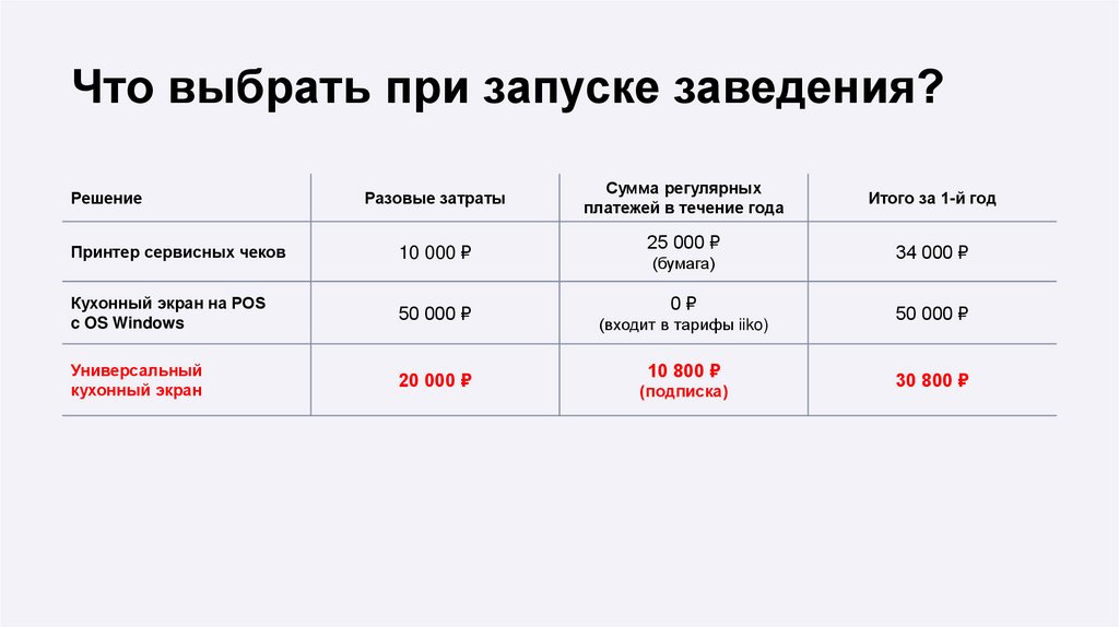 Что выбрать при запуске заведения?Решение