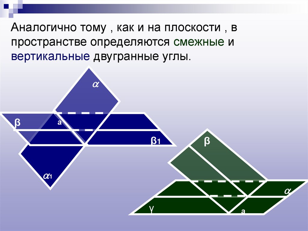 Аналогично тому , как и на плоскости , впространстве определяются смежные и