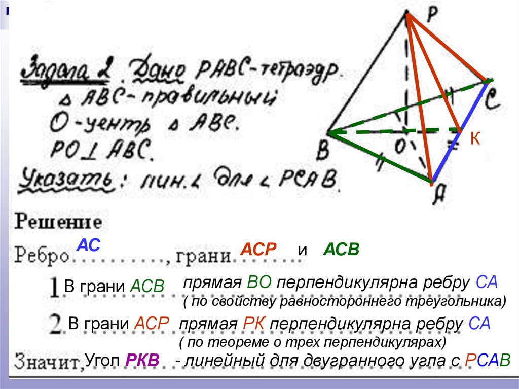 Угол РКВ - линейный для двугранного угла с РСАВ