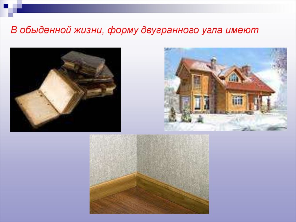 В обыденной жизни, форму двугранного угла имеют7. Обозначение двугранного угла.