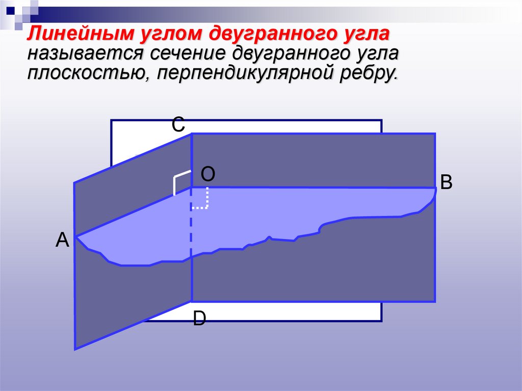 Линейным углом двугранного угланазывается сечение двугранного угла