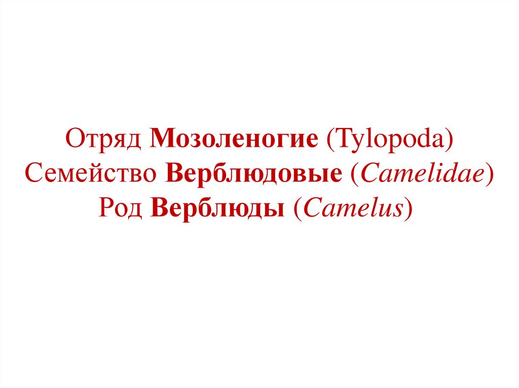 1. Отряд Мозоленогие (Tylopoda) Семейство Верблюдовые (Camelidae) Род Верблюды (Camelus)